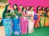 | Bodo girls in traditional dokhna. File picture |