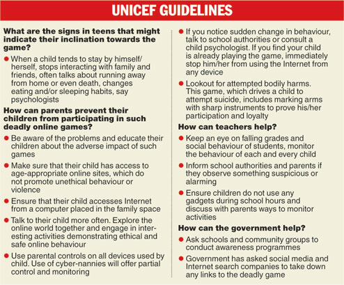 The police said there are at least four dangerous online challenges which involve emotional and psychological degradation of the players to the point of no return. A Unicef release warning about the recent developments, however, said it is one game that is known by four other names.