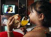 | Television and food make up a child’s world. Picture by Biju Boro |