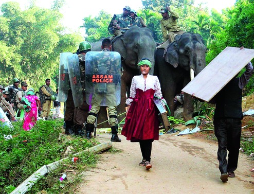 A group of settlers blocked the way at Nabajyoti Nagar as a team of forest and Kamrup (metro) administration officials entered the forest, forcing the police to fire tear gas shells to disperse the mob. Five persons, including a photographer of the forest department, received minor injuries in the melee that followed.