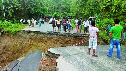 A major portion of the highway, the only link from Banderdewa, the gateway to Arunachal, to the twin capital cities of Naharlagun and Itanagar, was washed away near Karsingsa, 30km from Itanagar, following heavy rain last night and this morning. This has stopped traffic movement on the highway completely.