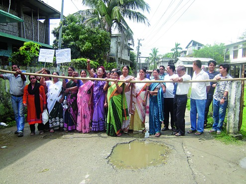 The protesters on Monday blocked the roads coming from Gharpara Chuburi and Mazgaon to Sacred Heart School from 8am, shouting slogans against Goswami until the district administration reached the place and assured the locals about the development of roads. The residents submitted a memorandum to Sonitpur deputy commissioner through the circle officer demanding immediate repair of the roads before the monsoon.