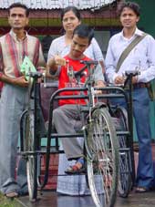 POWIET students Imran Hussain, Ravi Kumar Choudhury, Dambaru Saikia, Ashok Kalita and Swapnali Deka toiled under the guidance of lecturer Pranab Kumar Borthakur of the mechanical engineering department to create a ?modified tricycle? which they recently gifted to Prerona, the Cinnamara-based institute for spastics.