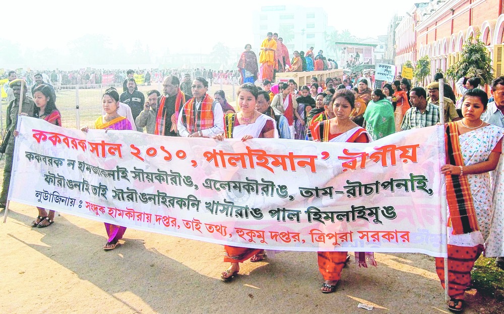Since then, the teaching of the language as a medium of instruction in tribal-dominated languages had started and now tribal students continue their studies exclusively in Kokborok in altogether 918 schools within autonomous district council (ADC) areas and 703 schools outside it.