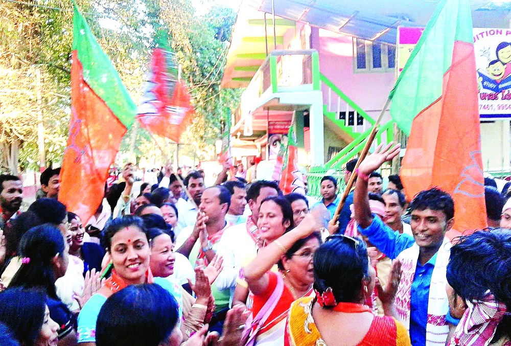 Guwahati, Nov. 22: The BJP's victory march continued in Assam with the ruling party today sweeping the byelections by winning both the Lakhimpur Lok Sabha and Baithalangso Assembly seats.