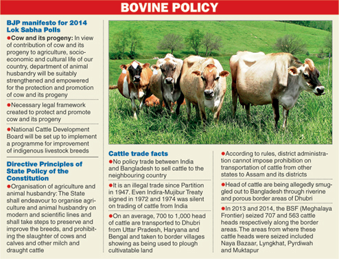 On a daily basis, nearly 300 heads of cattle are slaughtered for consumption in and around Shillong, he said. Here, the price per kg of beef is in the range of Rs 240 to Rs 280. According to official statistics, beef (cows and buffaloes) production in Meghalaya in 2013-14 was 23,302 tonnes (12,780 tonnes produced within the state and 10,522 tonnes brought from outside). Warlarpih argued that the Khasi-Jaintia region of Meghalaya is entirely dependent on head of cattle from Assam. "For the last two years, we have been purchasing cattle from Assam. Earlier, cattle were brought from Uttar Pradesh and Bihar. We do not have our own cattle to meet the requirements," he said.