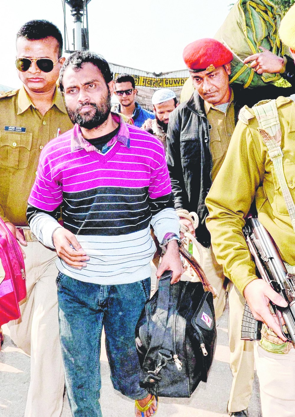 Sahanur Alom with a team of Assam police in Guwahati on Friday. (PTI)