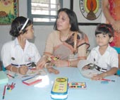 | Neeru Chhabra, president of Army Wives Welfare Association (AWWA), interacts with children during an art competition at Tezpur Army School, Solmara, on Thursday on the occasion of AWWA Day. Picture by Eastern Projections |