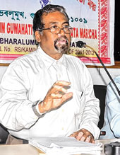 | Subodh Sharma, president of the Mahanagar Unnayan Samity in Guwahati on Sunday. Picture by UB Photos |