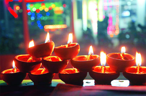 | Festival of Lights: A row of diyas lit on Diwali in Tezpur. Picture by UB Photos |