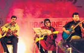 | Mayukh Hazarika (centre) performs at a function in the city |
