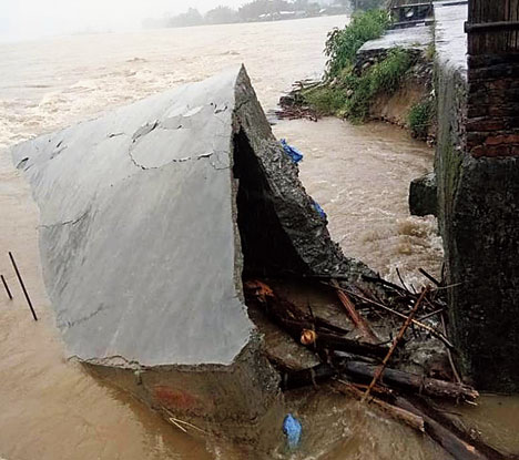 A portion of bridge number 693 over Jiadhal river between Dhemaji and Bordoloni stations has been washed away.