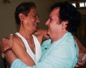 | George Baker of Chameli Memsaab fame hugs his director Abdul Majid in Nagaon on Wednesday. Baker had acted in Majid’s 1975 film about a British planter who falls in love with and marries a tea garden worker, only to be accused of her murder. The film was a huge success, turning Baker into a matinee idol. The handsome actor acted in two more Assamese films, Devi and Priyojon. Now based in Calcutta, this Anglo-Indian actor is in Guwahati to inaugurate the State Film Awards Festival on Friday. Baker agreed to the department of cultural affairs’s request on one condition — that he be given the opportunity to watch some of the finest Assamese films ever made. The festival will host a bouquet of 29 Assamese films — from award-winning ones to box-office hits — at Anuradha and Apsara halls from Friday. Picture by Eastern Projections |