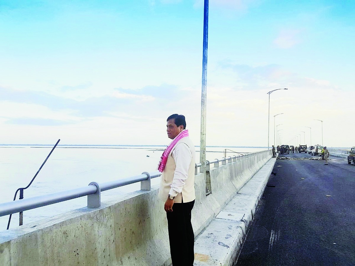 Dibrugarh: Assam chief minister Sarbananda Sonowal on Sunday inspected the Bogibeel bridge here.