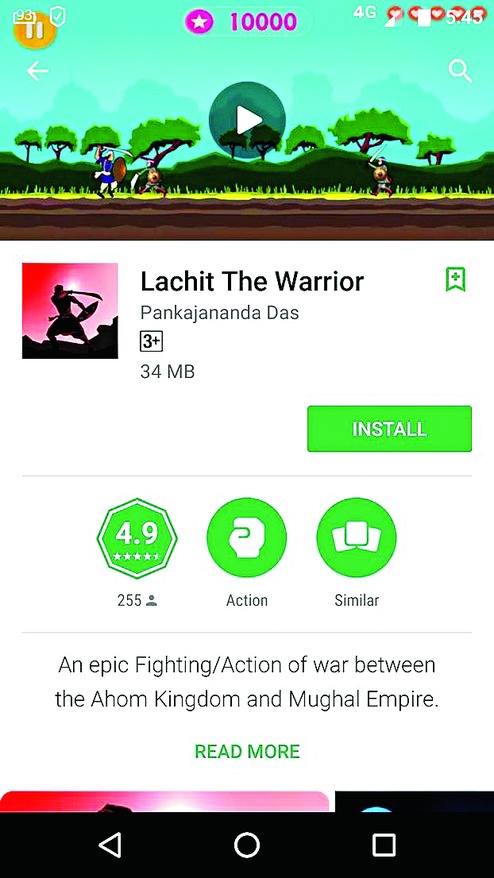"It is an app with a character named Lachit. Users can be part of the Saraighat battle between the Mughal and Lachit's armies. It's the first version of the app and we shall soon launch another one with other historical wars of the era," Jiten said.
