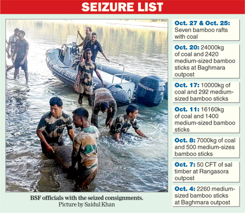 In the last three weeks, the BSF personnel deployed at Baghmara seized several consignments of timber, bamboo and coal from the river.