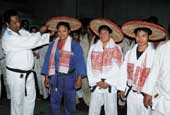 (From left) Brojeswari Devi, Tombi Devi and Bibirani Sanu from Manipur were felicitated by the All Assam Judo Association on Friday at Guwahati. The felicitation marked the beginning of the fourth phase of the one-month preparatory camp for National Games sponsored by the Directorate of Sports . The trio will represent Assam in the National Games. They will also participate in the senior national camp starting in Imphal from July 10, from where the team will be selected for a meet in Colombo. The three have been employed by the CRPF and are based in Delhi. Picture by S.H. Patgiri