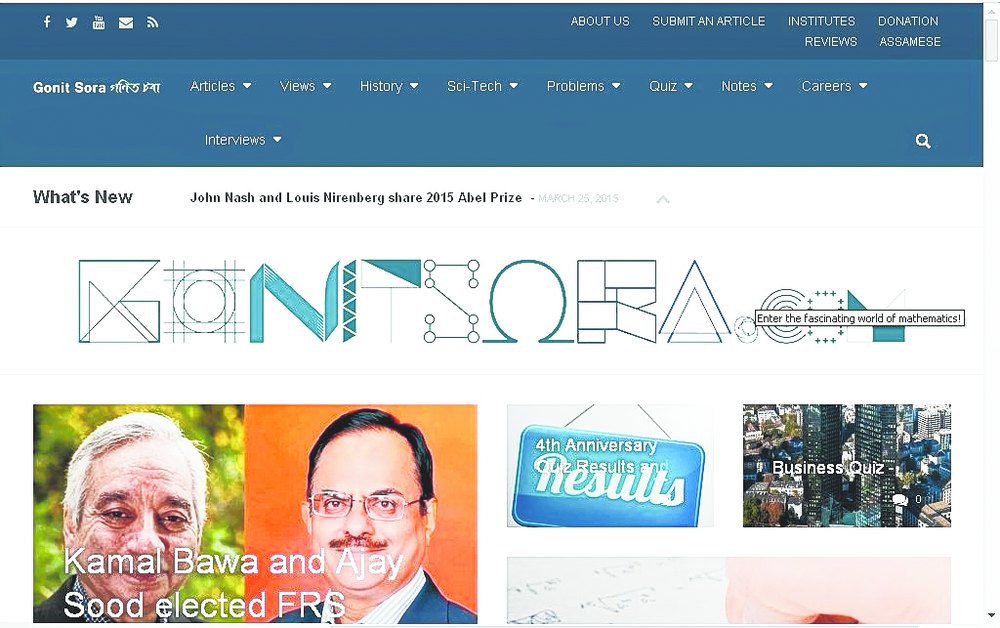 The founders of the website, which is popular for being both in Assamese and English, have also opened a technology-related website, www.tech.gonitsora.com. They will soon publish a book on mathematicians and scientists for schoolchildren, apart from hosting the mathematics carnival of Aperiodical.com, a maths website, this summer.