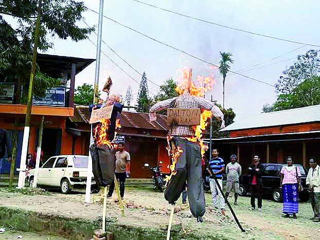 Following the statement, some other civil organisations, including victims of the firing and their relatives, today burnt effigies of Momin and Marak at Williamnagar in East Garo Hills and Resubelpara in North Garo Hills today.