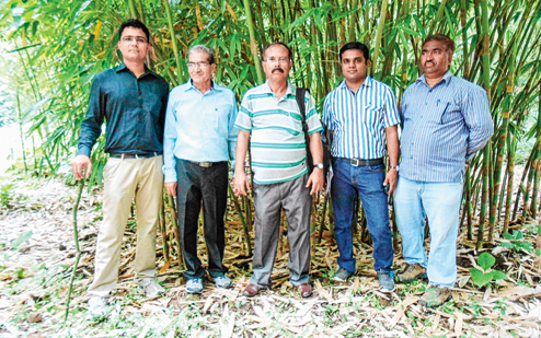 | T.C. Bhuyan (centre) with faculty of ASPEE College of Horticulture and Forestry visit a bamboo grove in Gujarat. Telegraph picture |