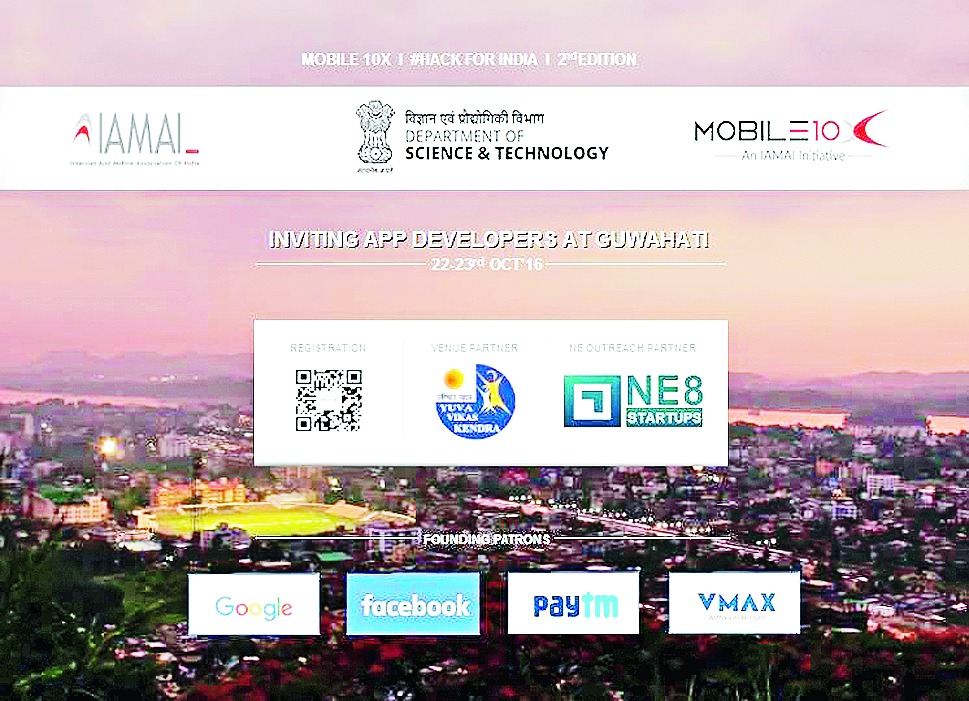 Silchar, Oct. 21: The second edition of the Mobile10X hackathon, a unique initiative from Internet and Mobile Association of India (IAMAI), will kick off at the Yuva Vikas Kendra near Kalibari, Amingaon, in Guwahati tomorrow.
