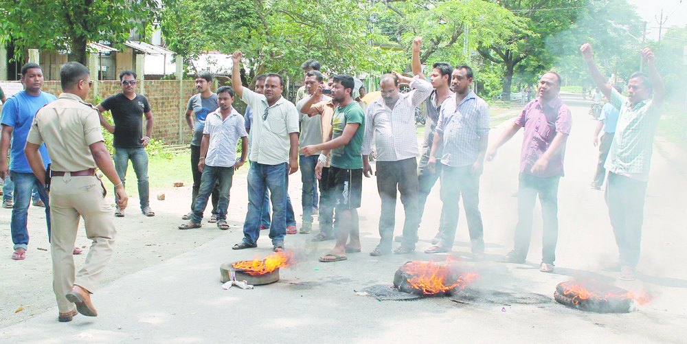 Police arrested a large number of protesters while they were burning tyres on the roads to prevent movement of vehicles in all the Upper Assam districts.