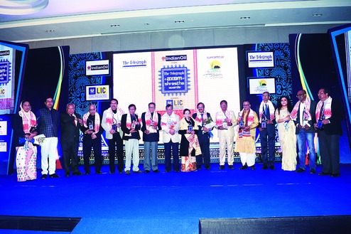The third edition of Indian Oil presents The Telegraph Axom Shrestho awards, powered by Life Insurance Corporation of India and supported by Assam Tourism, on Wednesday honoured Javed Parvesh (tourism), Nipon Goswami (film), Krishna Roy (theatre), Lakshahira Das (literature), Kishori Mohan Pathak (education), Tayabun Nisha (sports), Pulak Banerjee (song and music), Jatin Goswami (dance), Pulak Gogoi (art and culture), B.P. Saraf of Matri Mandir (social work), Jahnabi Phookan (entrepreneurship) and Payal Chadha (fashion).
