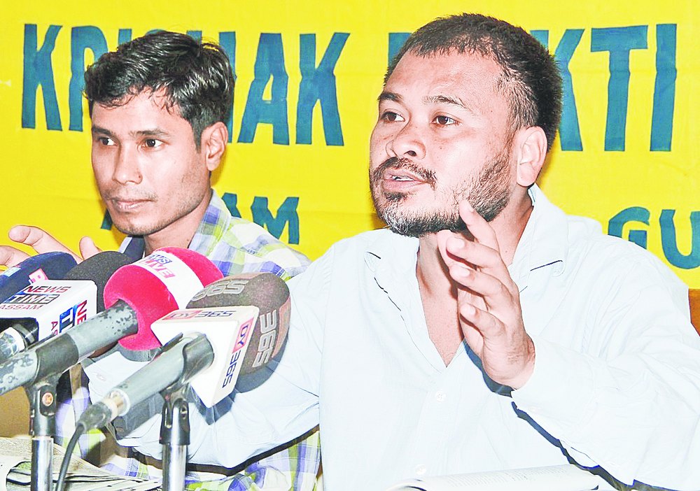 KMSS president Akhil Gogoi at the news conference in Guwahati on Saturday. Picture by UB Photos