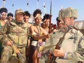 | Army personnel with Naga ‘warriors’. Picture by Pradeep Pareek |