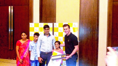 Brett Lee with Vainavi Dassani who underwent cochlear implantation in Guwahati on Monday. Telegraph picture