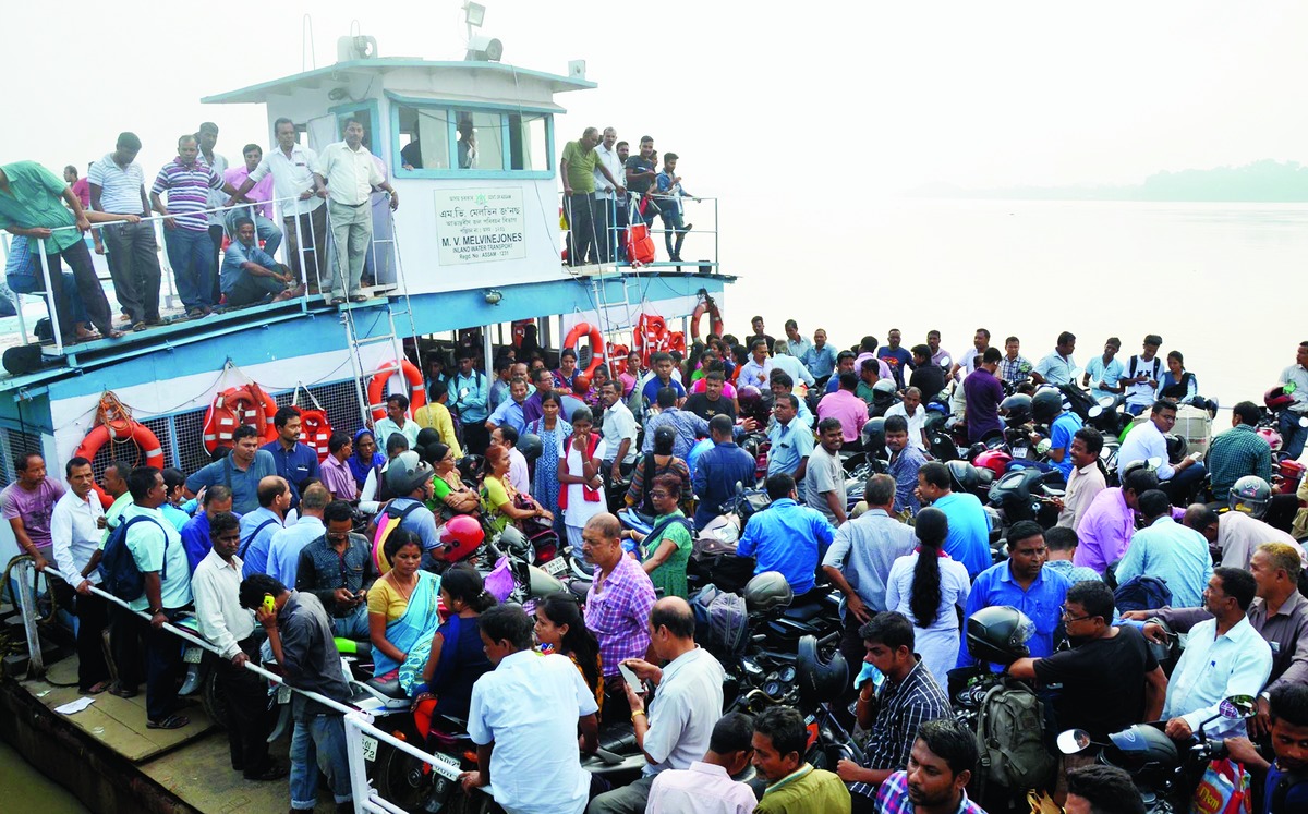 The overcrowded M.V. Melvinejones vessel crosses the Brahmaputra in Guwahati. Picture by Manash Das