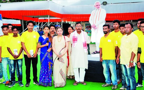 Artistes wait to perform during the Moatsu Mong festival in Dimapur on Tuesday.