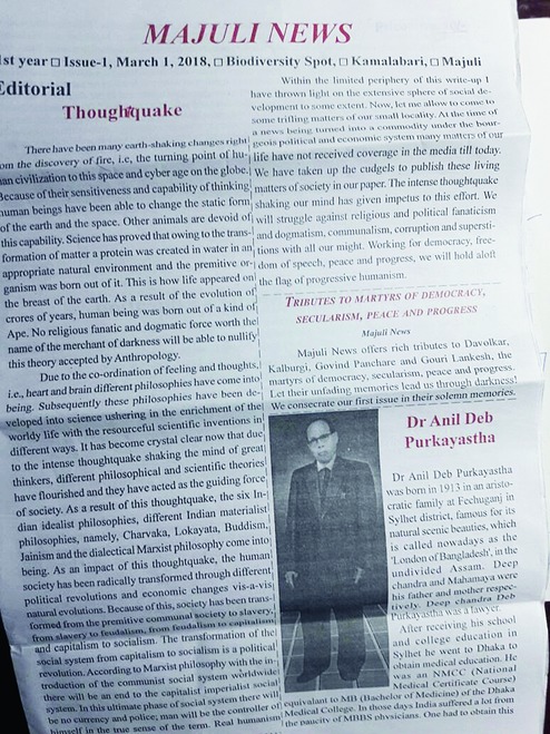 Besides politics, Majuli News carries articles on culture, education, historical studies, editorials science, agriculture and also has a slot for poetry. But even with the objective to create conducive atmosphere based upon the ideals of democracy, Paul has faced the wrath of Internet trolls .