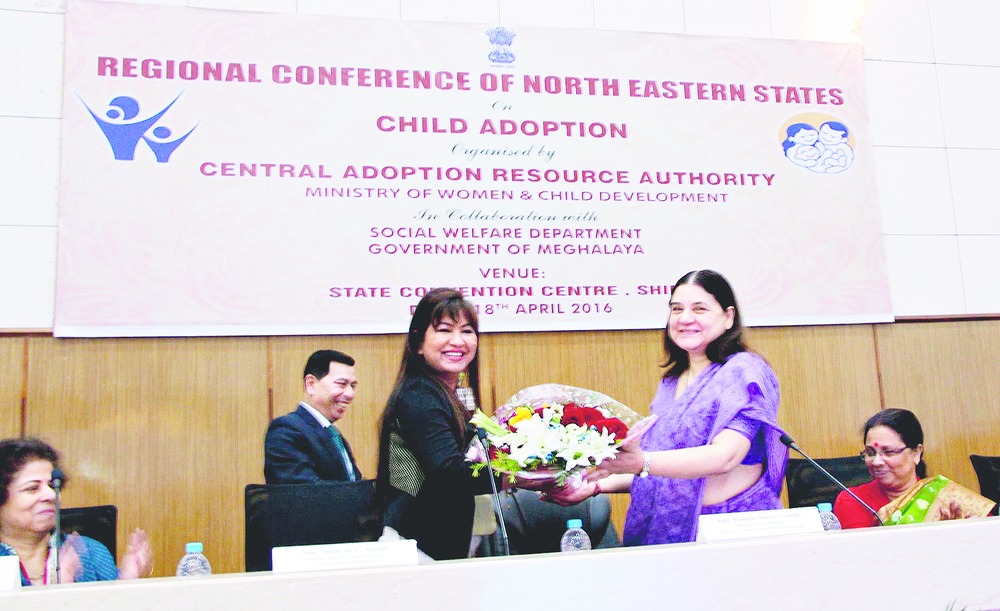 Shillong, April 18: Union minister for women and child development Maneka Gandhi today asked state governments in the Northeast to form a committee on providing foster care to children with poor chances of adoption and address problems related to it.