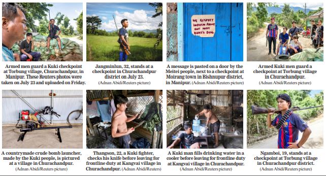 He said he was there to protect his village from the Meiteis “who are going to attack us, who are going to burn our houses”. “When they attack, we fire,” he said.