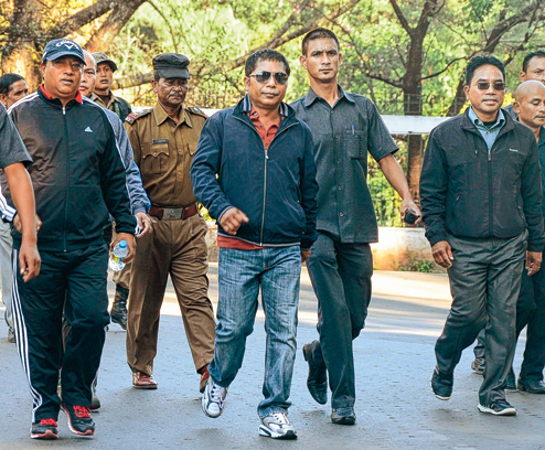 | Mukul Sangma during the Run for Peace and Harmony marathon at Madan Iewrynghep in Shillong on Friday. Picture by UB Photos |
