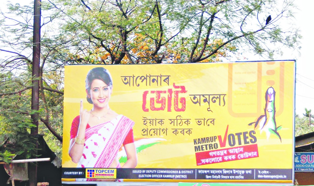 One can spot these balloons at the Bhupen Hazarika Xomadhi Khetra in Jalukbari, office of the deputy commissioner and on B. Borooah Road. Posters and hoardings will also be displayed at various public places, schools and colleges. Voter slips as a reminder to vote will be distributed among residents a day ahead of the polls.