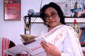 A popular columnist, her various columns in the local dailies have captivating titles — Ramanthan (flashback), Ujuti (to trip over something), Hasoti (little bundle in a hanky), Leseri (branch of experiences of various hues) and Bijuti (fault).