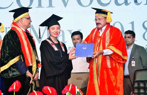 Naidu conferred degrees on two PhD students, 28 MTech and 37 BTech students of the 2015-2017 batch during the programme.
