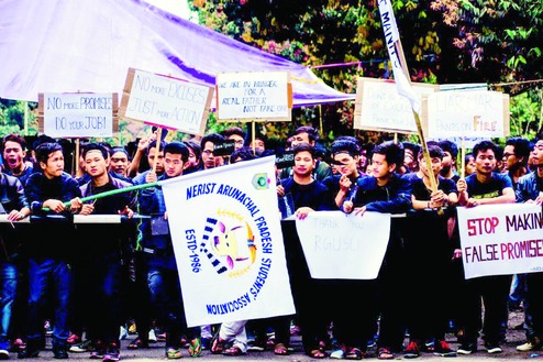 Ten PhD scholars, namely Taku Muni,Chungni Sono, Debashi Pal, Sonu Kumar, Dayal Shill, Prem Ranjan, Tagam Doni, Nabam Papu, Dhon Bagang and Mudang Taro joined the relay hunger strike on Monday. The trio of Ige Rikam, Dikkar Taji and Rakesh Roy who initiated the indefinite hunger strike are still carrying on with their protest.