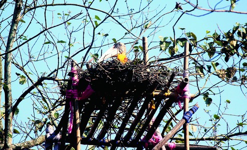 Guwahati: The globally endangered greater adjutant stork has found a new place of breeding in Assam - an artificial nesting platform.