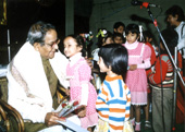 | Late Navakanta Barua with children. Picture by S.H. Patgiri |