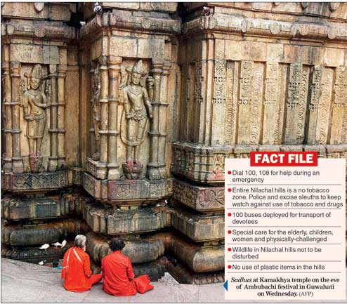 Guwahati, June 21: Assam chief minister today inaugurated the annual Ambubachi Mela, which is being projected by the state government on the country's tourism map, as tantriks, sadhus and devotees from different parts of the country started arriving at the Kamakhya temple on top of Nilachal hill here.