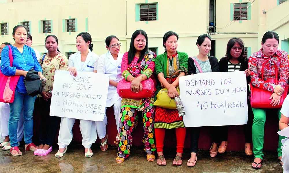 The nurses, under the banner of the All-India Government Nurses Federation (AIGNF), held a peaceful protest at the institute located in Mawdiangdiang, on the outskirts of the Meghalaya capital. They put forth a charter of 10 demands ranging from pay and allowances to reducing their working hours to 40 hours per week.