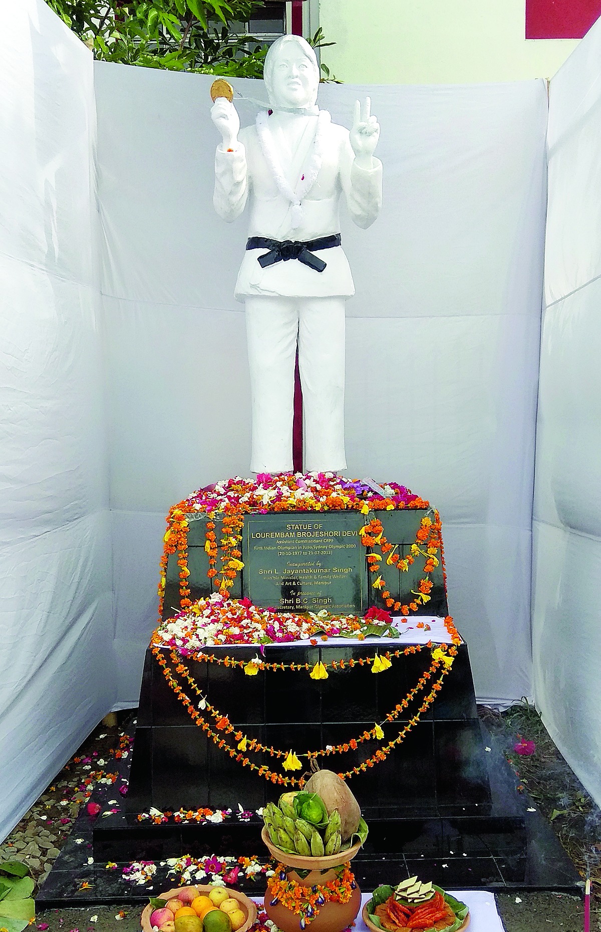 Imphal: A statue of India's first woman Olympian judoka, Lourembam Brojeshori Devi, was unveiled at the Manipur Olympic Association complex here on Sunday.
