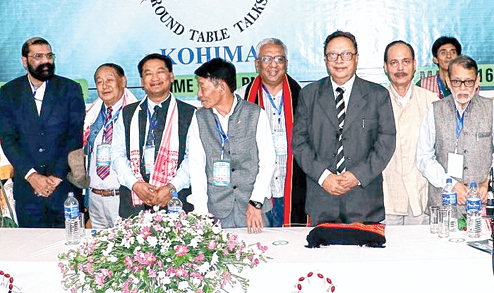 Participants in the second meeting of the Axom-Naga Round Table Talks in Kohima on Friday. The Naga Hoho and Asam Sahitya Sabha called for strengthening the friendship between the people of Nagaland and Assam to put an end to years of conflict between the neighbours over the inter-state boundary. The meeting was an initiative of the Guwahati-based Nanda Talukdar Foundation. Members of civil society groups from Nagaland were also present. This is the first time that any such delegation has visited Kohima.