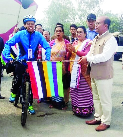 The solo cycle rally was flagged off by Wangjing Tentha constituency MLA Paonam Brojen at the western gate of Kangla, the cultural heritage site of Manipur, here on Tuesday.