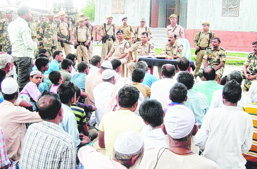 Officials hold a meeting with villagers in Dhubri on Thursday. Picture by UB Photos