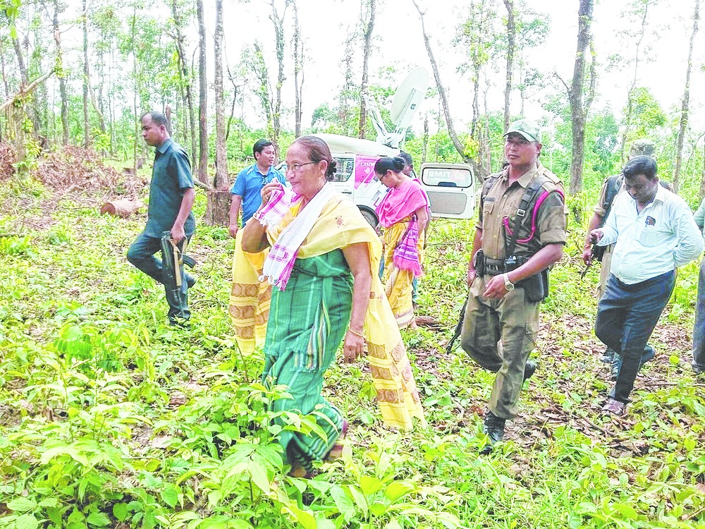 Kokrajhar, June 12: Assam forest minister Pramila Rani Brahma today visited Nayekgaon forest range in Kokrajhar to understand the ground situation where destruction of forest has threatened the existence of the endangered golden langur.