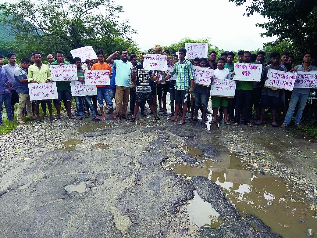 Bongaigaon: Local residents staged a protest at Mulagaon here on Wednesday over the dilapidated Bongaigaon-Salbari road ahead of chief minister Sarbananda Sonowal's visit.